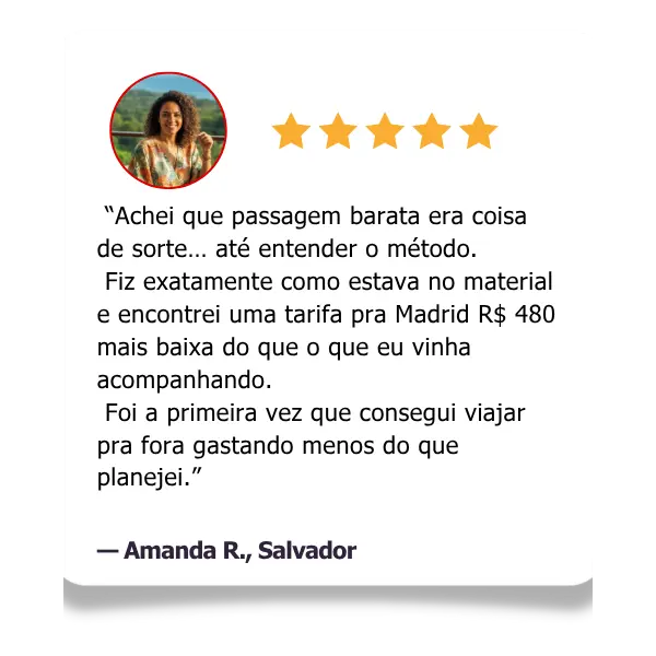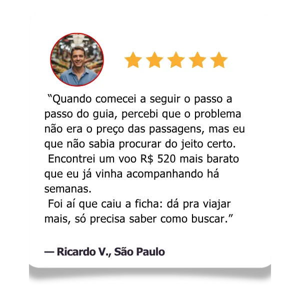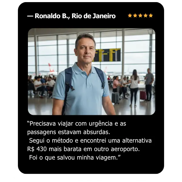 O programa mostra, de forma simples e prática, as mesmas estratégias que viajantes experientes usam para encontrar tarifas até 70% mais baratas, aplicando um passo a passo direto e fácil de seguir.